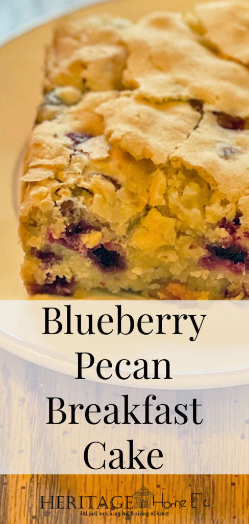 Sometimes we just need something different in our recipe repertoire. I know I love my coffee cake, but sometimes it just ends up being mundane. And I love having alternatives to serve at brunches and other gatherings. This Blueberry Pecan Breakfast Cake is just the thing to break up the breakfast drudgery.